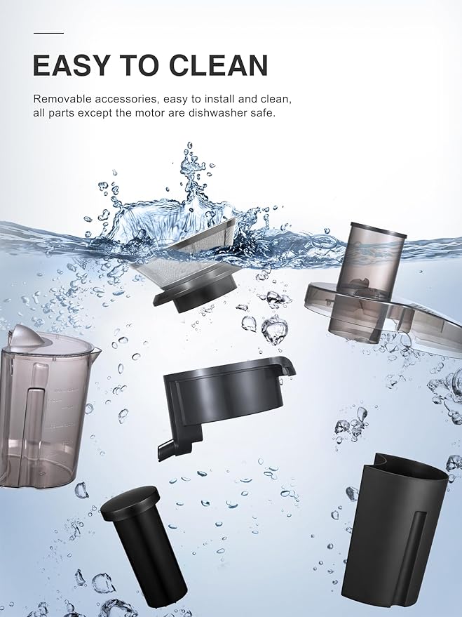 - Safety Design and Easy to Clean – Juicer Extractor with locking system arm; it will not work without the cover locked into place. The overload protection system will switch off the machine once overheating occurs. Detachable parts make it easy to clean!
