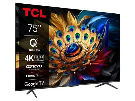 TCL 75C61B 75-inch QLED 4K Smart TV with Dolby Vision and Dolby Atmos for cinematic entertainment.